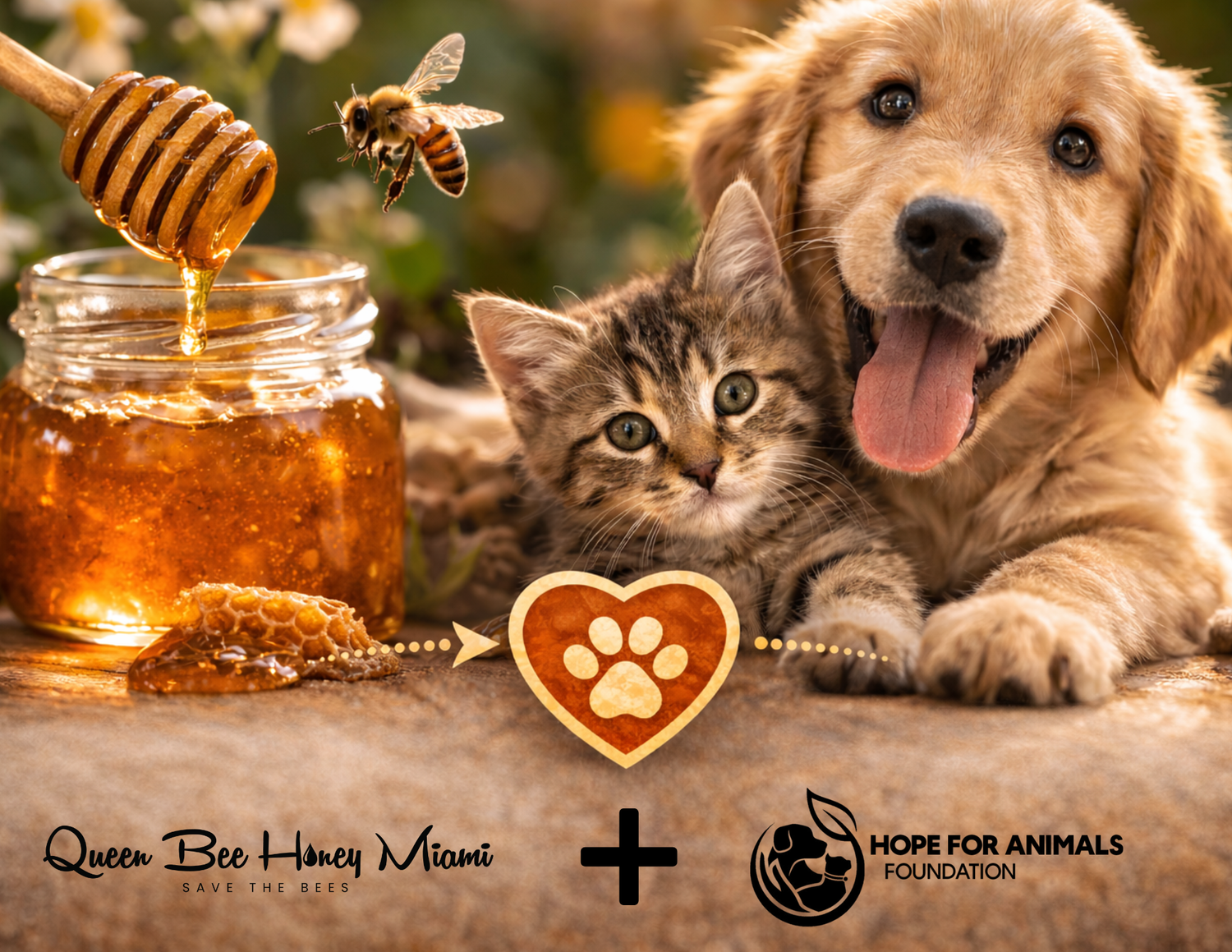 Queen Bee Honey Miami rescues bee colonies and supports animal welfare. A portion of every purchase helps the Hope For Animals Foundation protect animals in need throughout South Florida.