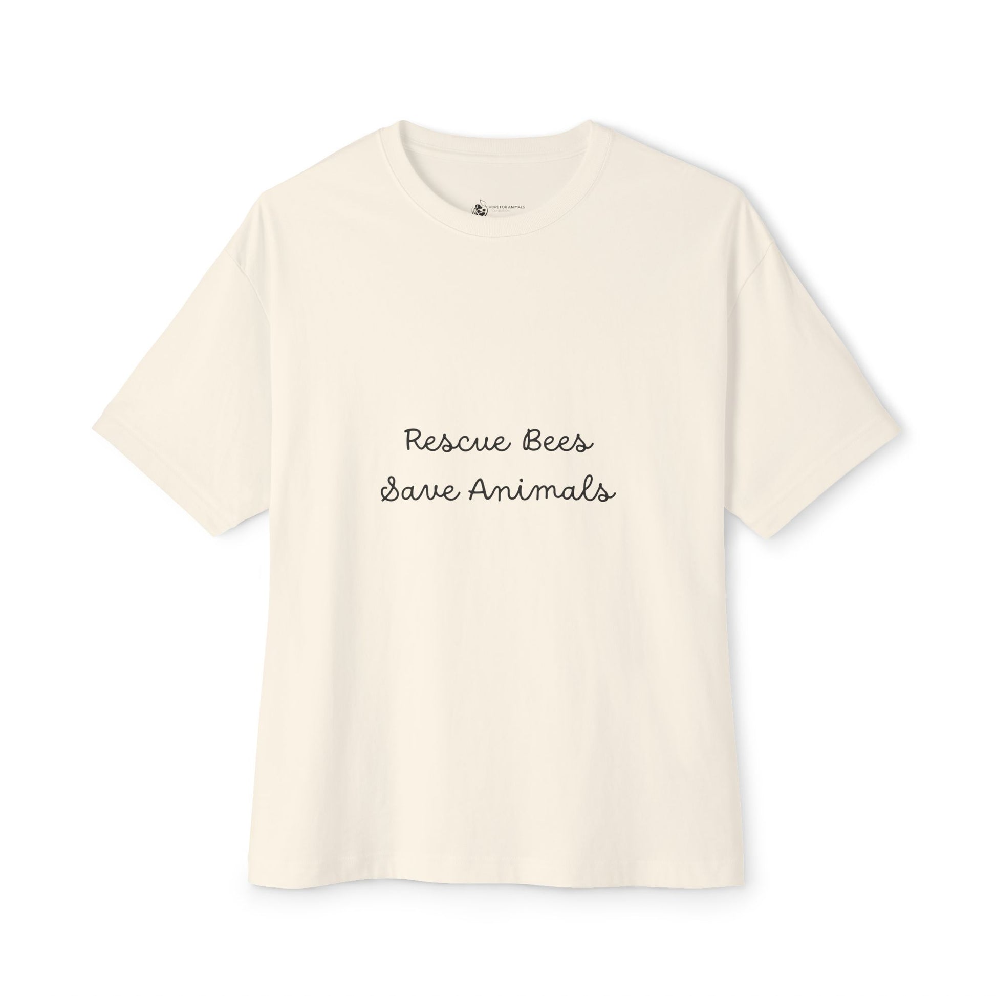 Soft, breathable, and quietly expressive — this oversized boxy tee carries a gentle message in delicate script: “Rescue Bees Save Animals.” It sits comfortably on the shoulders with a relaxed, dropped-shoulder cut that drapes casually over everyday movement. The medium-weight cotton feels substantial yet airy, making it a go-to layer for morning coffee runs, volunteer days at the sanctuary, or slow walks through neighborhood gardens. The minimalist handwritten design keeps the focus on intention — wearable advocacy that doesn’t shout, but invites conversation from fellow nature-lovers. Tear-away label and reinforced stitching at the sleeves, neck, and hem mean this tee stands up to repeat wear and washings while keeping its soft hand. Reach for this when you want a simple, heartfelt way to share your care for pollinators and rescued animals.